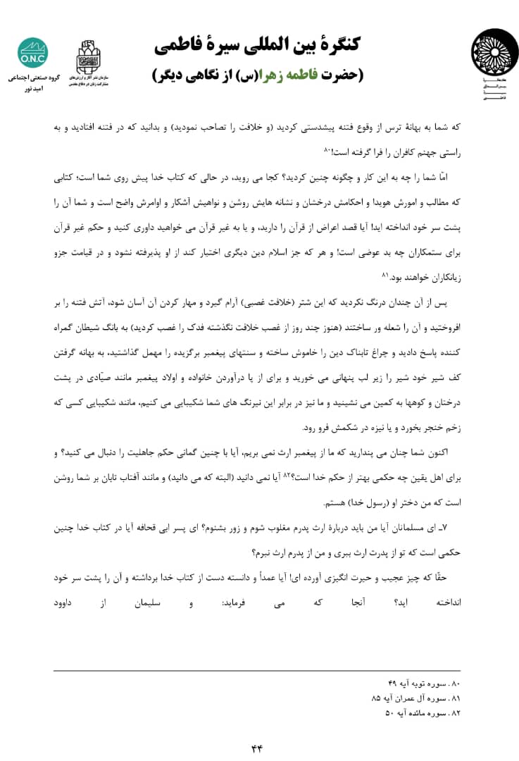 برچسب ها :برگزیده ، فاطمه زهرا(س) ، فدک ، کنگره بین المللی سیره فاطمی ، مشهد