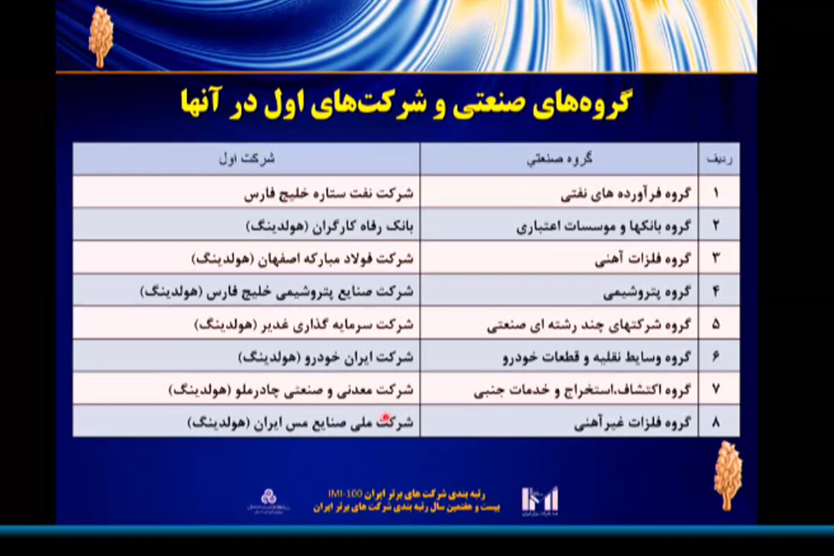 در بیست و هفتمین همایش شرکتهای برتر ایران (IMI-۱۰۰)؛