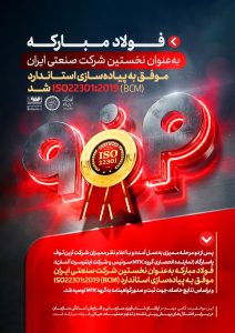 فولاد مبارکه به عنوان نخستین شرکت صنعتی ایران موفق به پیاده سازی استاندارد(BCM) ISO22301:2019 شد